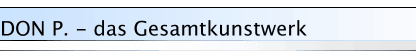 Diese Homepage steht noch am Anfang ihrer Evolution und bietet zur Zeit nur eine kleine Momentaufnahme meines Wirkens als Gesamtkunstwerk DON P.